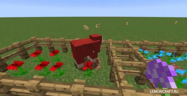 Мод на овец цветоедов Dye It Yourself добавляет в игру новую механику при которой овцы смогут питаться цветами. После того, как овца съест цветок, ее шерсть окрасится в соответствующий цвет, а из самой овцы начнет выпадать краситель.