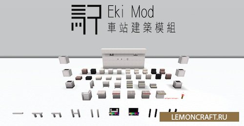 Мод на декорацию ЖД станций Eki небольшая модификация, автором которой является японский разработчик, добавляет в игру различные декоративные блоки для оформления железнодорожных станций и дорог.